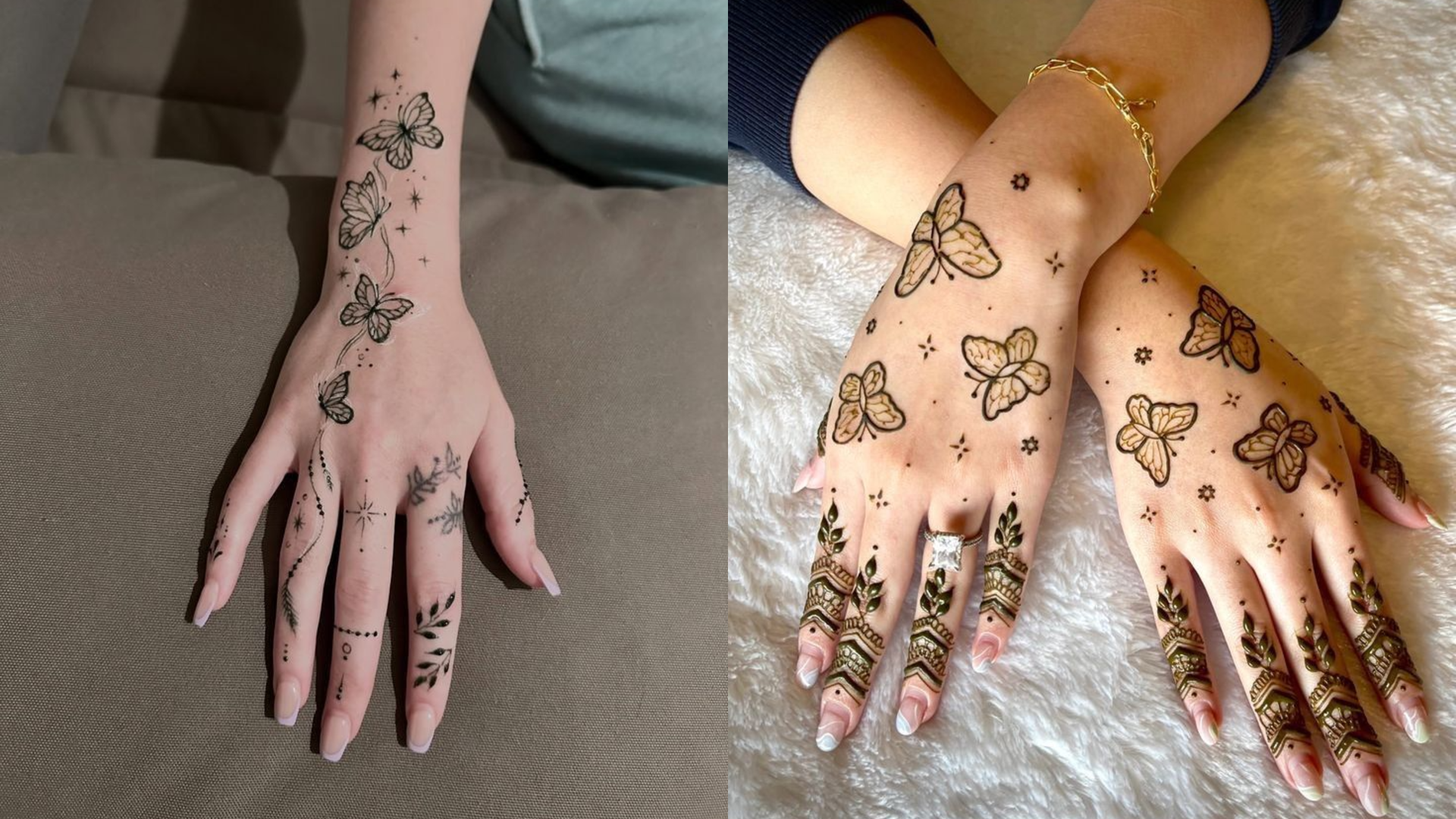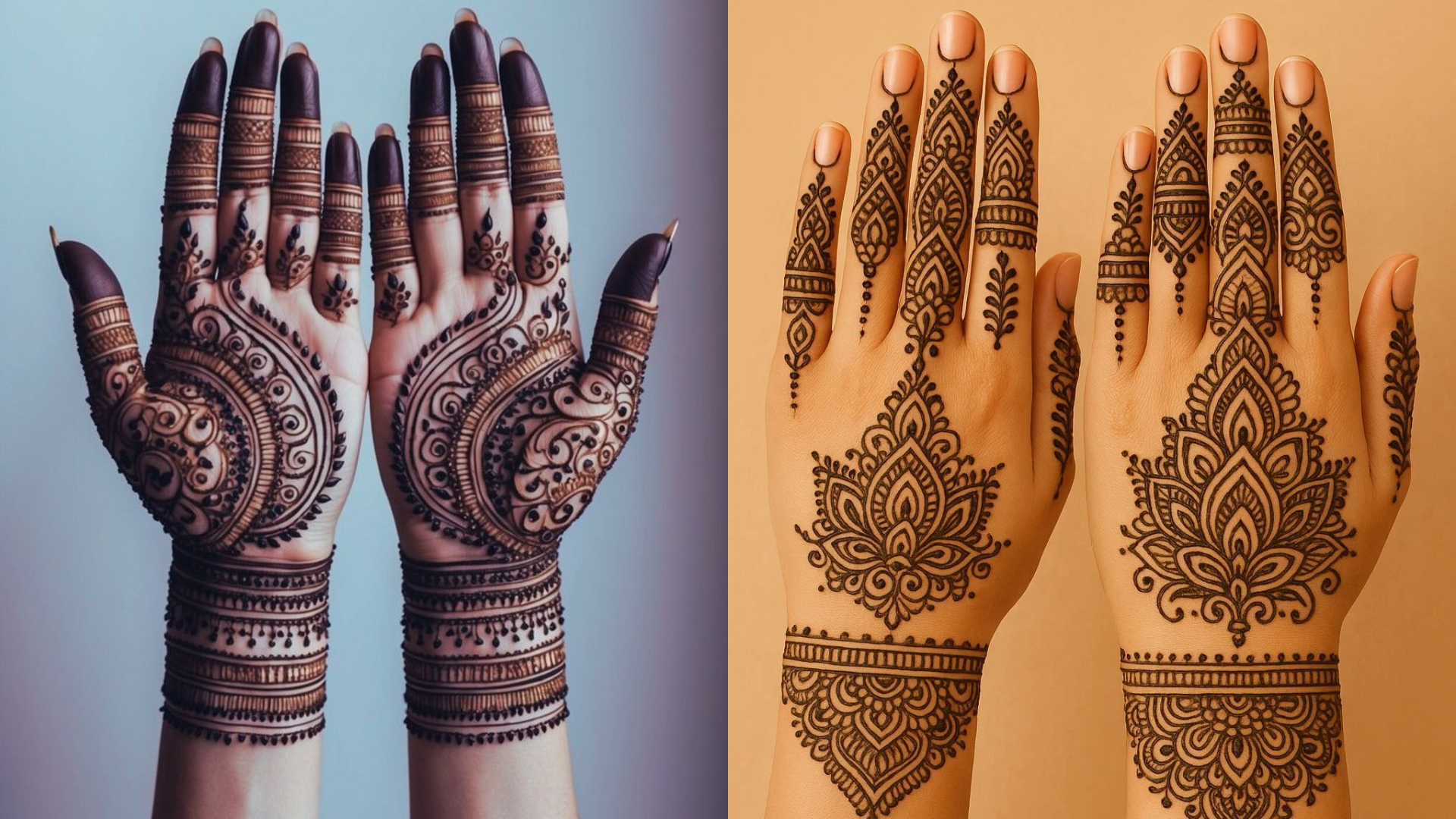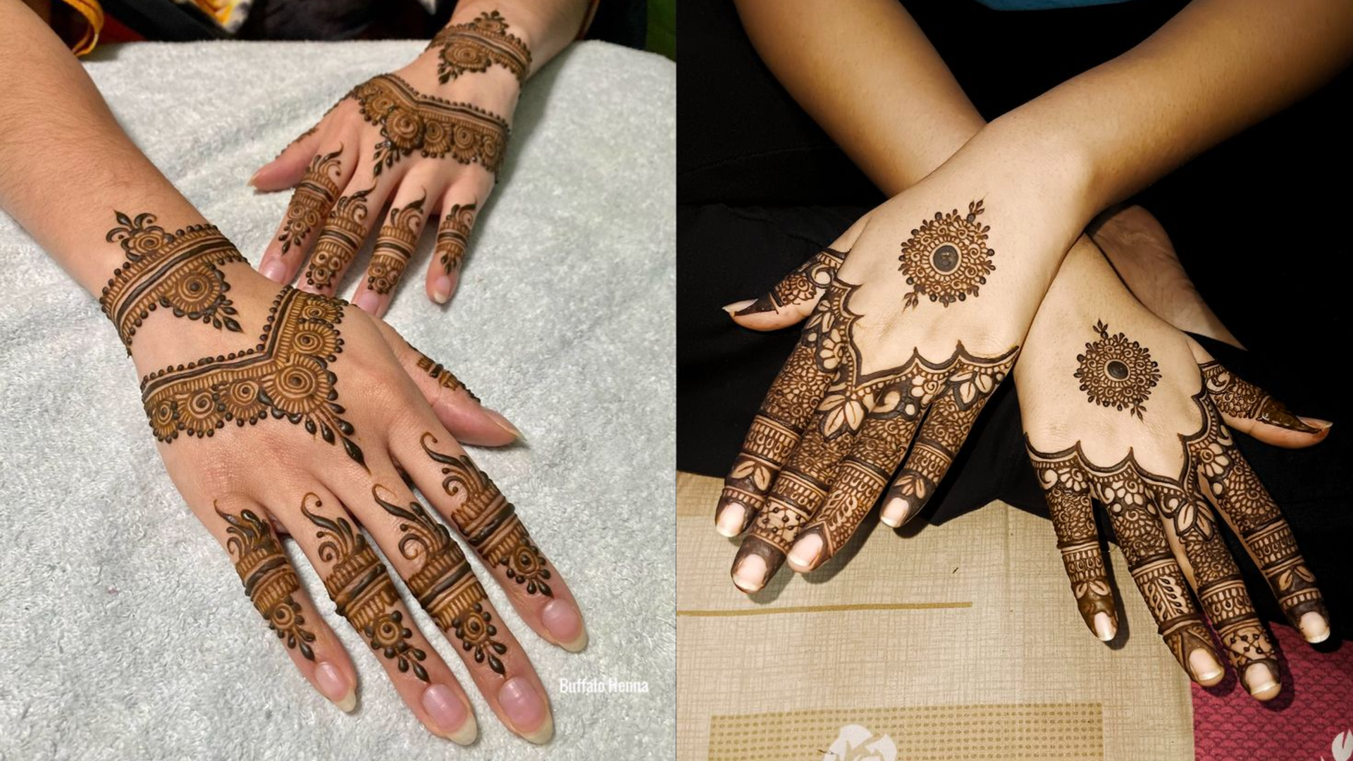 Geometric, ring-style, and heart motif mehendis are gaining traction this season.