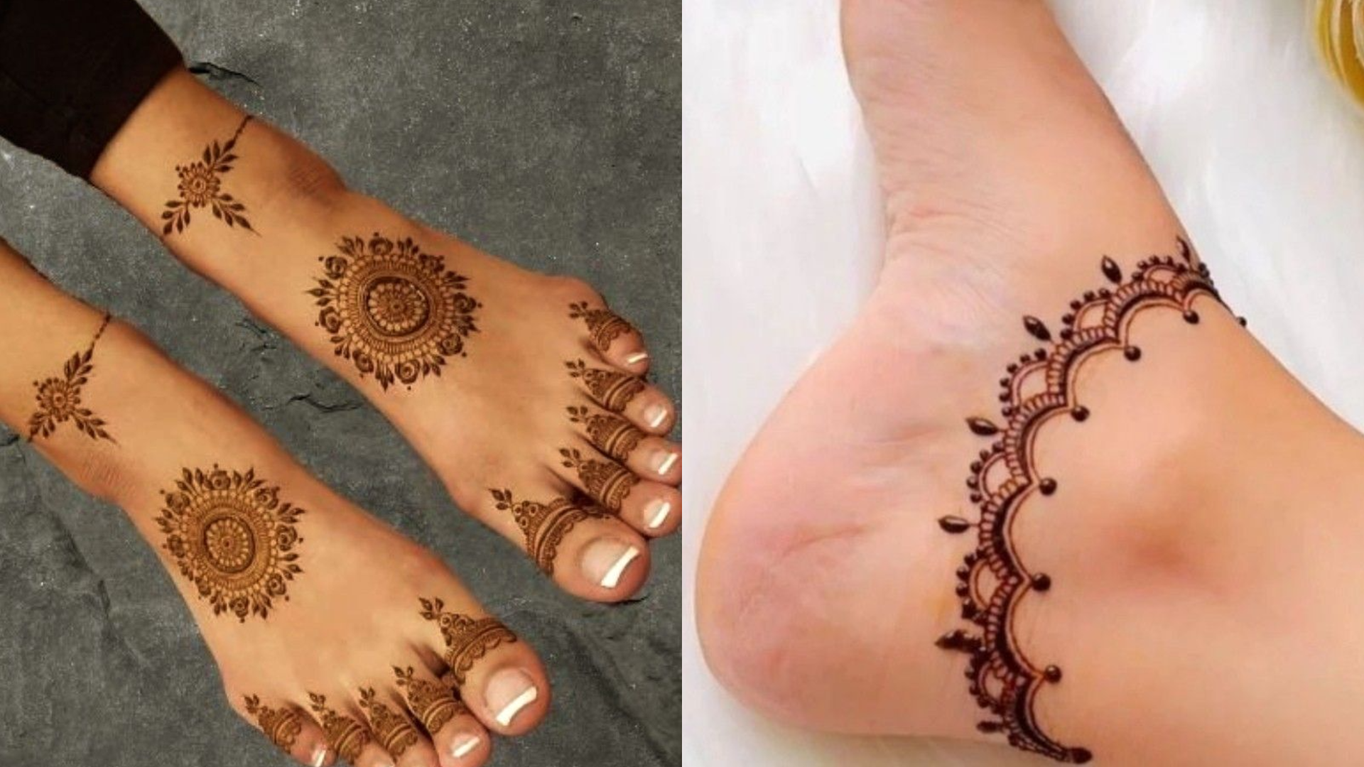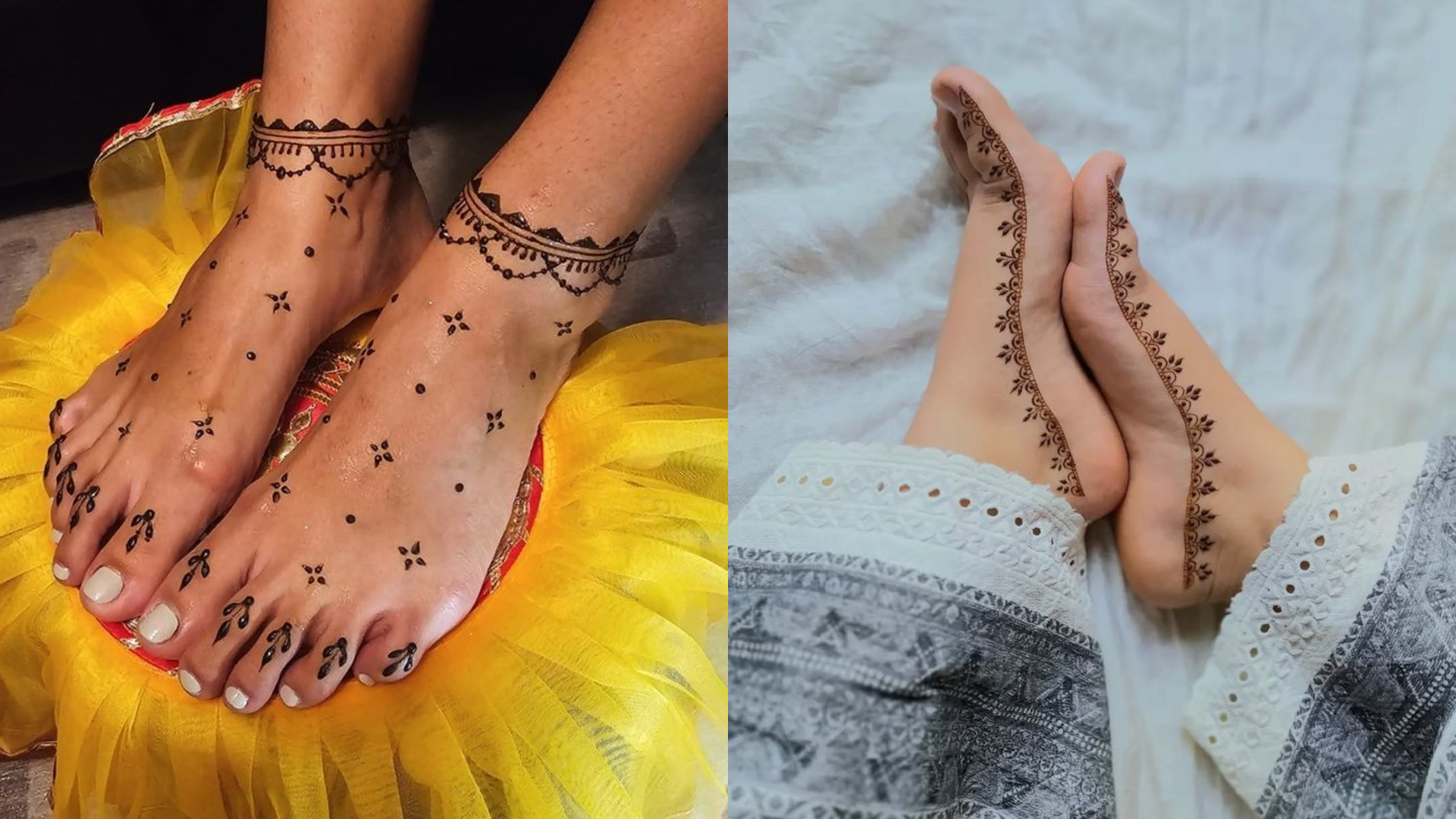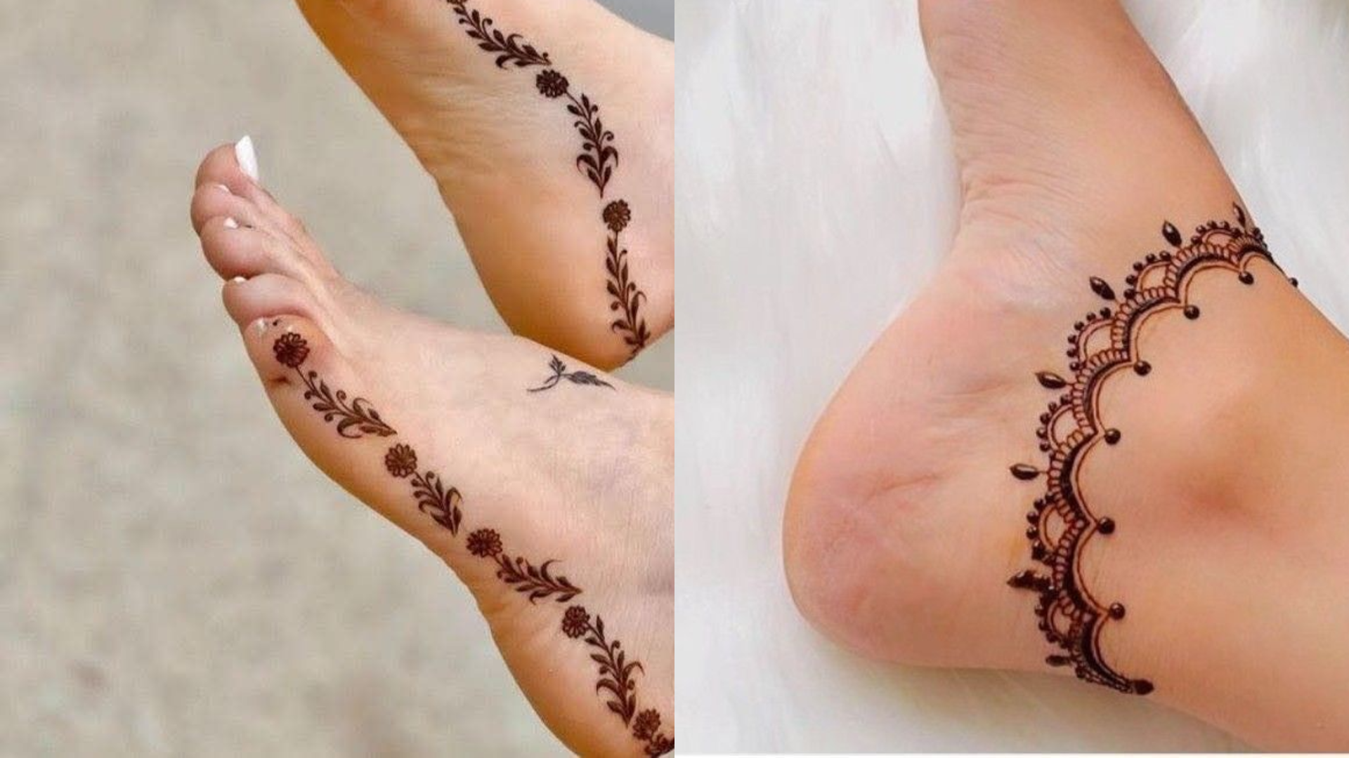 Delicate lines around the ankle resembling an anklet ideal for brides who love minimal feet mehendi.