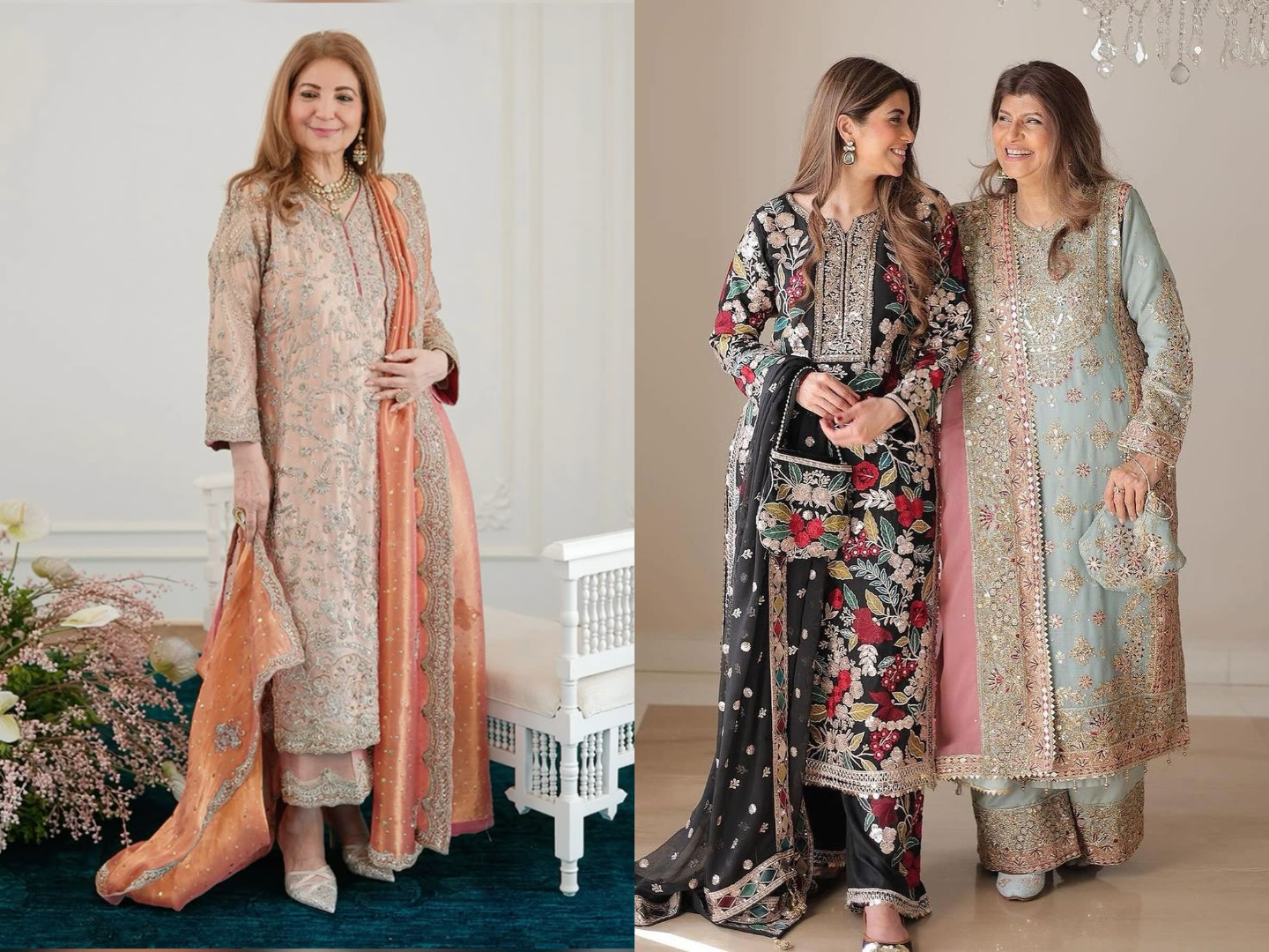 Now, if we’re talking about events where the mothers need to be a little more active like the Sangeet or the Reception, the Elegant Anarkali Suit is the way to go. It hits that perfect sweet spot between comfort and sophistication for both the mother of the bride and the groom. Think soft, flowing silk-blend fabrics in delicate shades like champagne, ivory, or blush. Toss in a beautifully embroidered, light zari dupatta, and you’ve got an effortlessly graceful look. It’s definitely one of the most versatile and flattering outfits for mothers who love that timeless silhouette but need to be comfortable for those celebrations.