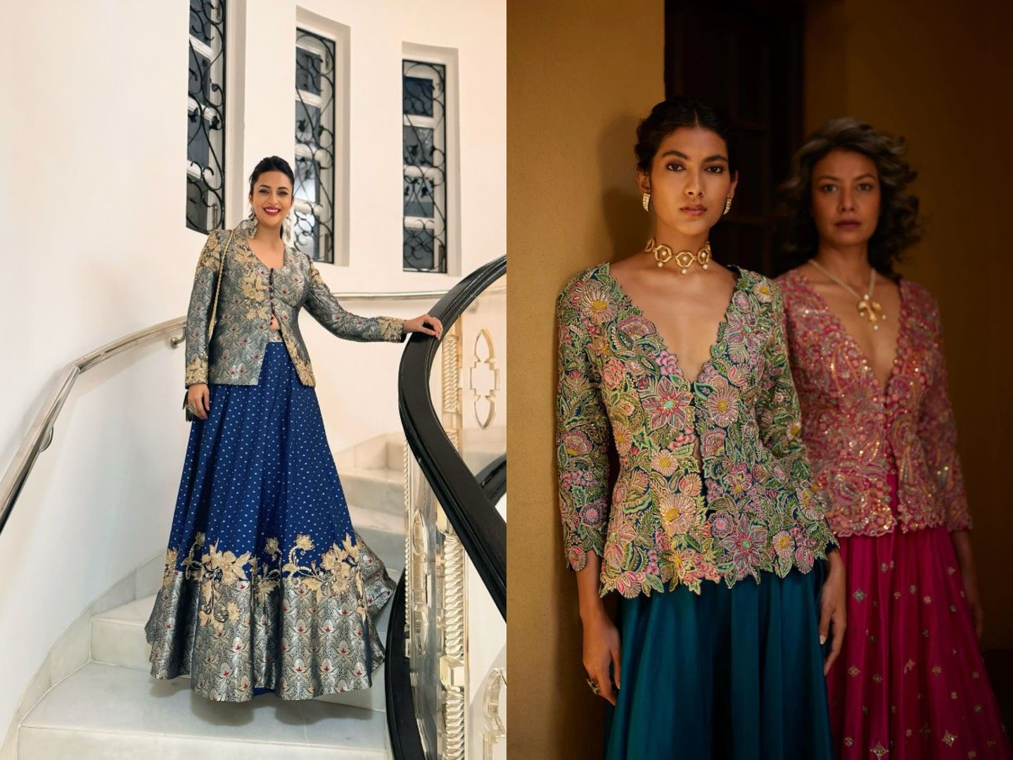 Organza sarees, silk co-ords, and jacket-style lehenga sets lead this year’s trends.