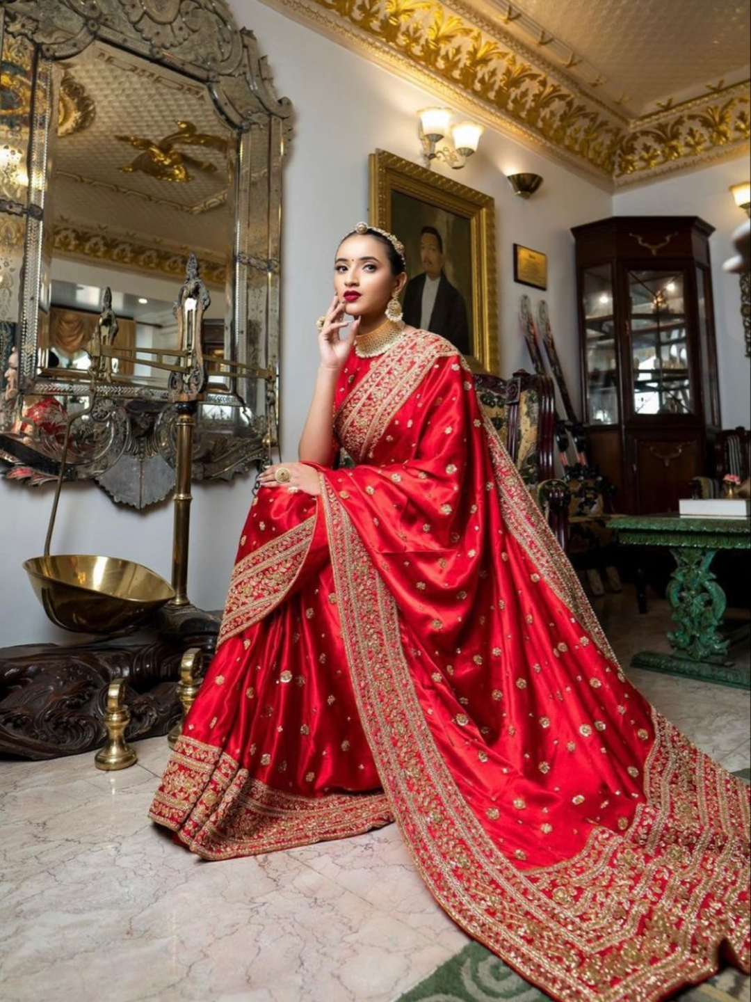 Why it’s special: A stunning example of India’s most loved traditional engagement sarees.