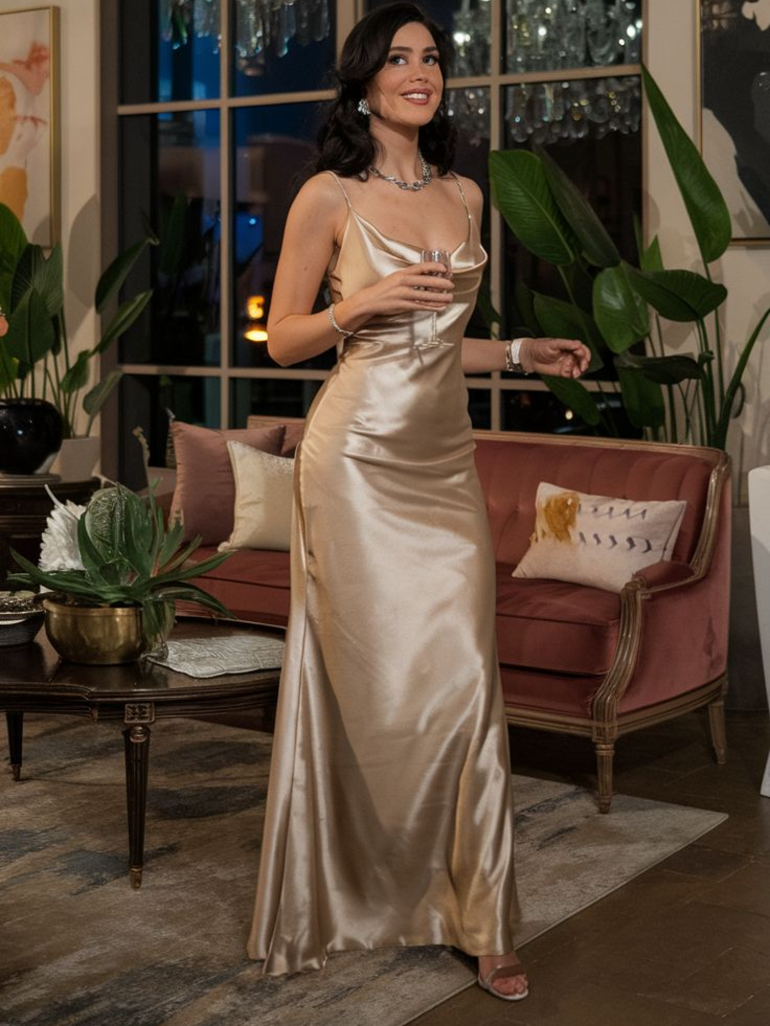Style tip: Glossy lips and minimal jewelry give red carpet vibes.