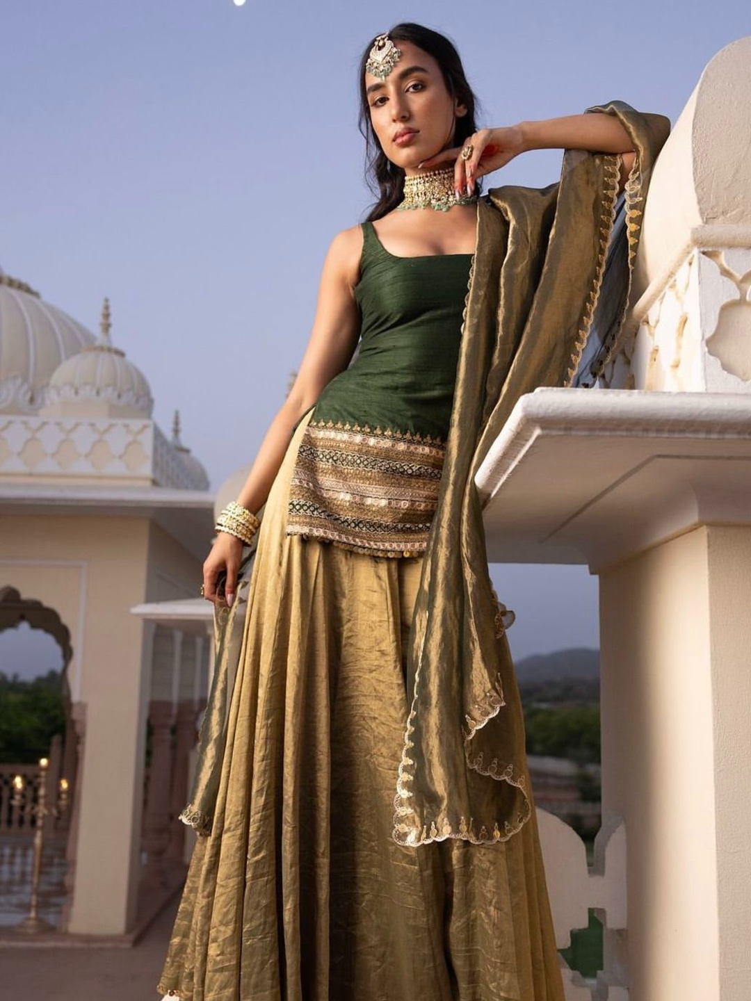 Why it works: A favorite among Indian engagement outfits for 2025.