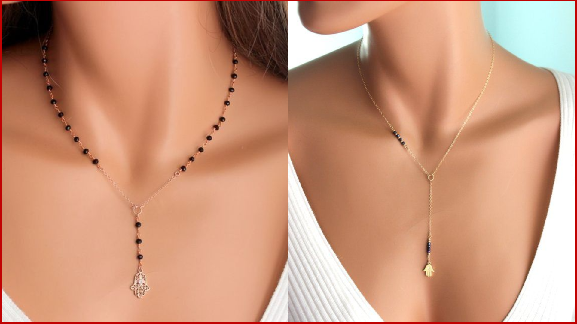 You’re planning on wearing a deep-neck blouse or a sharp V-neck dress, this is your winner. Instead of the traditional horizontal pendant, the chain drops down into a vertical Y shape. It’s all about that minimal effort, maximum impact energy. It creates a sleek, elongated silhouette that adds instant elegance to your look. It doesn’t just sit there; it flows with your outfit.